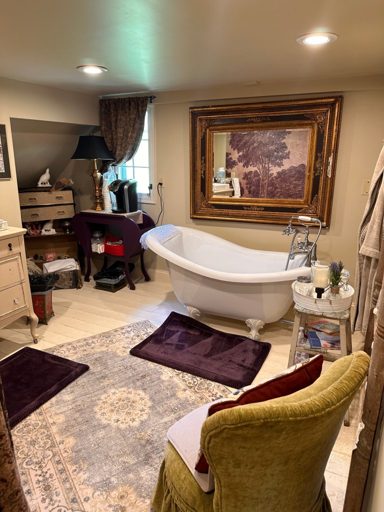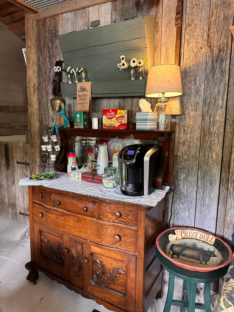We were truly amazed at the creative way all of the pieces were placed in/around the more modern amenities needed, such as the coffee/tea brewers 😉